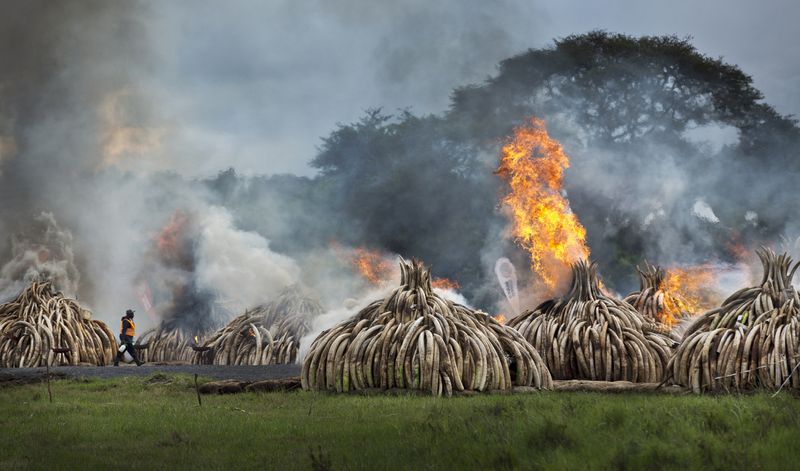 Kenya’s ivory during the burning process